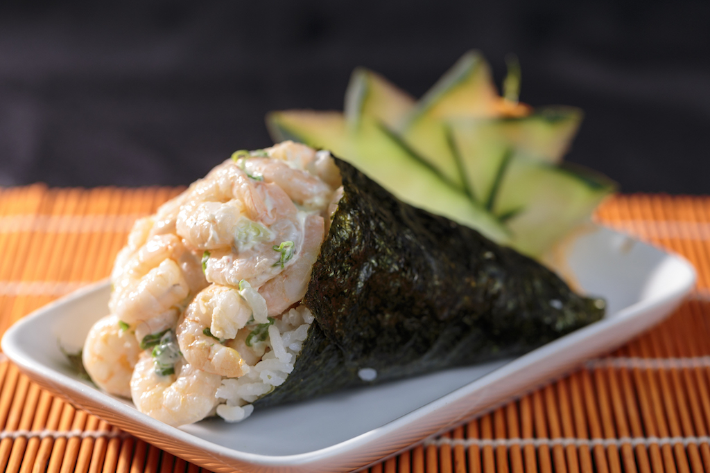 SUSHI HOUSE – “Temaki de camarão das Alagoas” : Sushi em formato de cone com recheio de camarão e cream cheese, acompanha molho especial com mel de engenho.