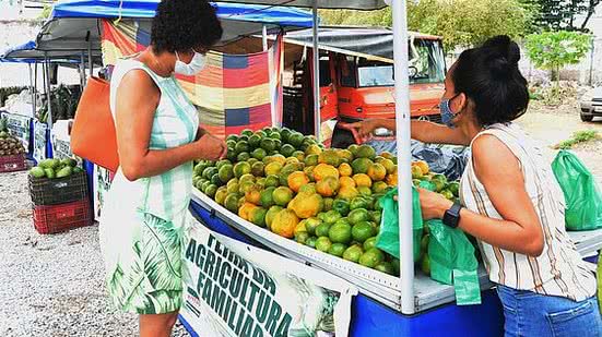 A comercialização é realizada respeitando as normas sanitárias de prevenção ao Corona vírus, como o uso de máscaras, álcool em gel nas barracas e a obrigatoriedade do cartão de vacinação de todos e todas agricultores e agricultoras familiares que estão comercializando seus produtos na feira.