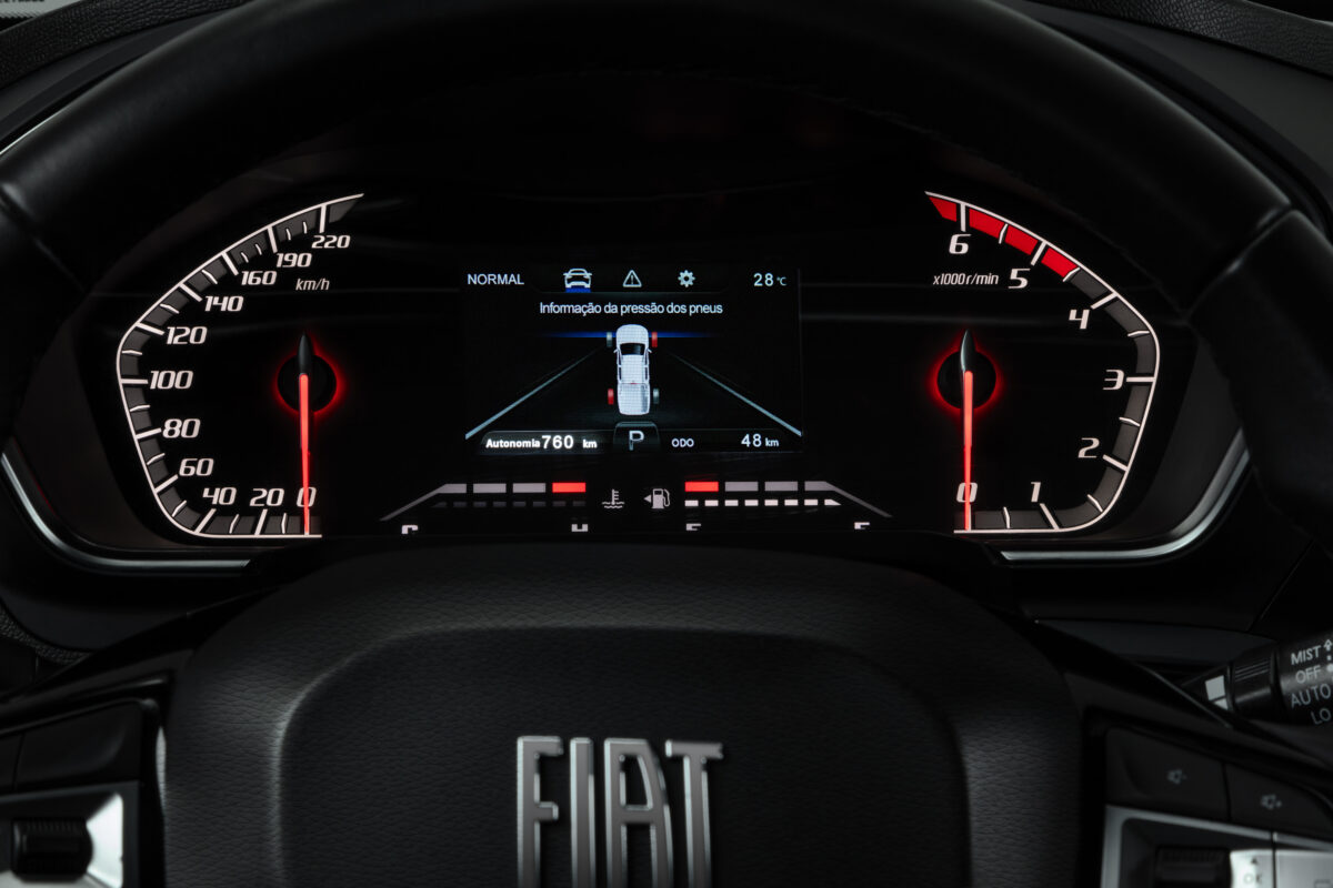 A Nova Fiat Titano conta também com detector de pressão dos pneus (TPMS). O recurso garante que o motorista seja informado continuamente em caso de perda de pressão em um ou mais pneus diretamente na tela da picape, além de avisar sobre um possível furo antes que o pneu esvazie totalmente. Esta é uma vantagem em termos de segurança fora de estrada e ajuda a manter a pressão ideal para controlar o consumo de combustível.