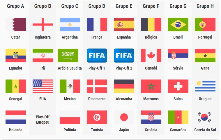 A Fifa realizou, na tarde desta sexta-feira (1º), o sorteio dos grupos da Copa do Mundo do Catar 2022, que ocorrerá entre novembro e dezembro deste ano.
