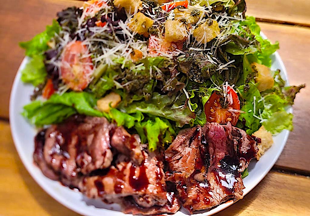 Salada com rosbife no almoço ou jantar no Grano Padaria