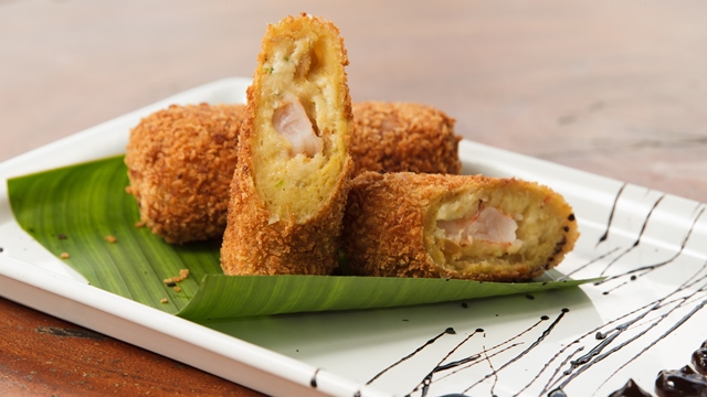 Hibiscus: Rolinho de massa de banana da terra recheado com peixe desfiado e camarão, empanado em farinha oriental, acompanhado de molho Teriaky cítrico/Rua em proj M Sitio São Gonçalo, A2 – Angra de Ipioca – Maceió, AL (82) 3034-1340