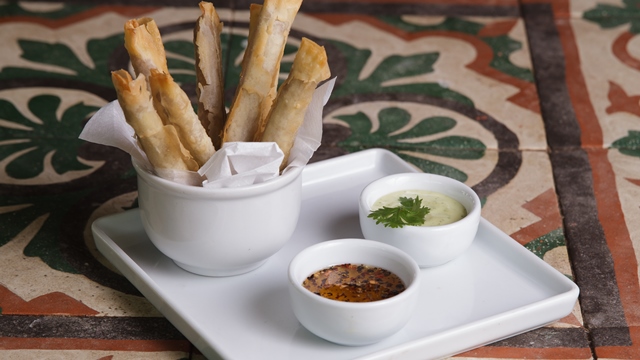 Kanoa: Massa finíssima e crocante com recheio de carne do sol na nata, acompanha mel apimentado e maionese de coentro. Av. Silvio Carlos Viana, s/n – Ponta Verde – (82) 3235-3943.