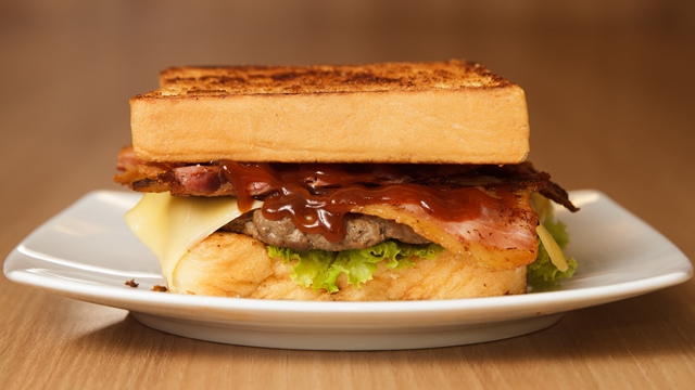 Kascão: Pão de forma e hambúrguer (ambos produção da casa)com queijo prato derretido, bacon fatiado, folhas de alface hidropônico, molho barbecue e molho rosé. Rua Emp. Carlos da Silva Nogueira, 595 – (82) 3325-7755