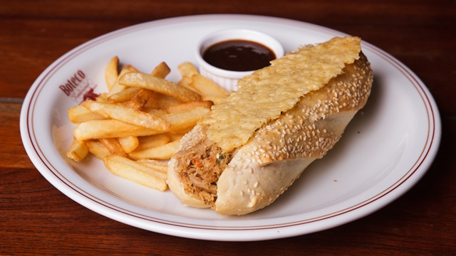 Boteco Lugar Nenhum: Sanduíche de pernil no pão francês, selo de parmesão e molho BBQ. Travessa Jatiúca – (82) 99971-1772.