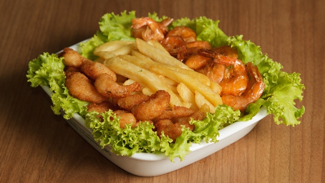 Vivenda do Camarão: Petisco com mix de Camarões empanados, batata frita e camarões fritos/ Av. Comendador Gustavo Paiva, 5945- Parque Shopping- Cruz das Almas – (82) 3024-9301.