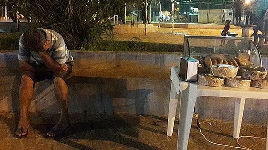“E o último salário dele, ele investiu em máquinas pra fazer lanches pra vender na rua, temos de TUDO!!! Hoje foi nosso primeiro dia na pracinha perto da nossa casa vendendo, e na foto de cima, é ele pensativo por não ter vendido nada hoje”, continua a jovem, que também afirma acreditar que "tudo tem um propósito, e que nada é em vão". "Estamos lutando, e sei que Deus é justo”, finalizou ela.