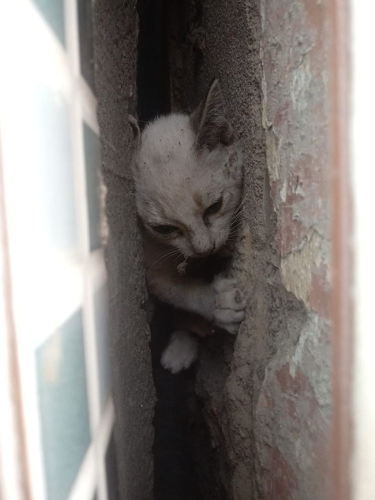 Um filhote de gato foi resgatado com vida por uma equipe do Corpo de Bombeiros, nesta segunda-feira (25), após ficar preso entre as paredes de duas residências na Rua José Terto Jacinto, no centro do município de União dos Palmares, Zona da Mata de Alagoas.