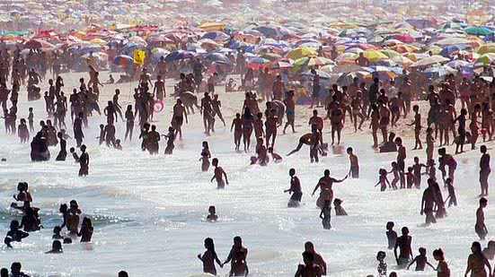 Nas areias, eram poucos os espaços vagos. A maioria dos frequentadores não usava máscaras nem respeitava as regras de distanciamento.