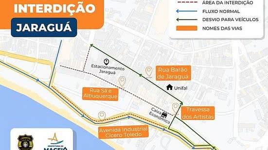 O fluxo de veículos da Avenida Industrial Cícero Toledo, na proximidade da Caixa Econômica, e da Rua Sá e Albuquerque, próximo à Praça Dois Leões, será desviado pela Travessa dos Artistas e pela Rua Barão de Jaraguá, seguindo para o destino desejado. O trânsito permanecerá interditado na Avenida Comendador Leão, impossibilitando o retorno para a Rua Sá e Albuquerque.