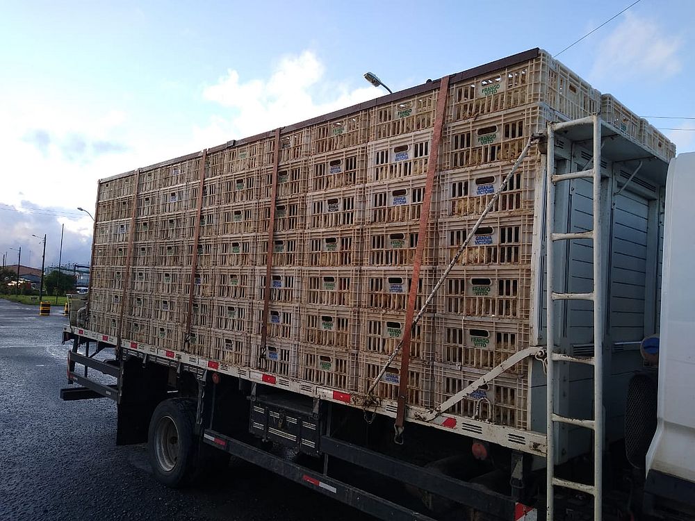 Um caminhão com mais de 900 frangos vivos, em situação irregular, foi apreendido nas primeiras horas desta terça-feira (30), durante fiscalização de agentes do Batalhão de Polícia Rodoviária (BPRv) na AL-101 Sul.