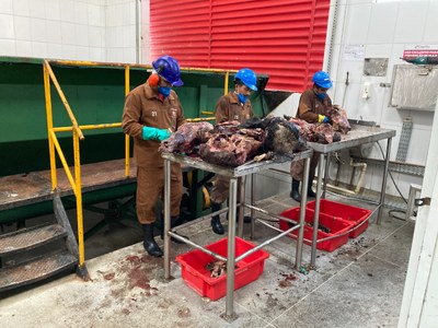 A primeira empresa visitada, um frigorífico de caprinos e suínos, não estava em pleno funcionamento, mas algumas desconformidades foram identificadas pelo IMA e pela Semarh, tais como:
