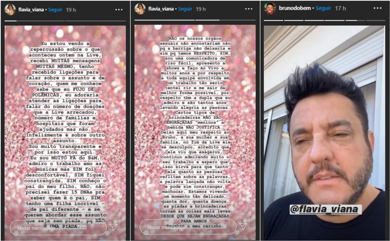 O cantor também usou as redes sociais para se manifestar sobre o caso, no domingo, e pediu desculpas a Flávia. "A gente não pode falar nada, brincar nada, que as pessoas interpretam pro outro lado, só veem o lado negativo. Eu não falei nada, só brinquei com ela."