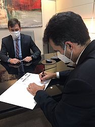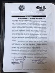 O presidente da Ordem dos Advogados do Brasil Seccional Alagoas (OAB-AL), Vagner Paes, e o Defensor Público-Geral do Estado de Alagoas, Carlos Eduardo Monteiro, se reuniram na sede a OAB-AL, em Maceió, nessa quarta-feira, 23, para assinar uma nota de repúdio contra a omissão da Braskem quanto à situação de cerco e isolamento dos moradores da comunidade do Flexal, no bairro de Bebedouro.