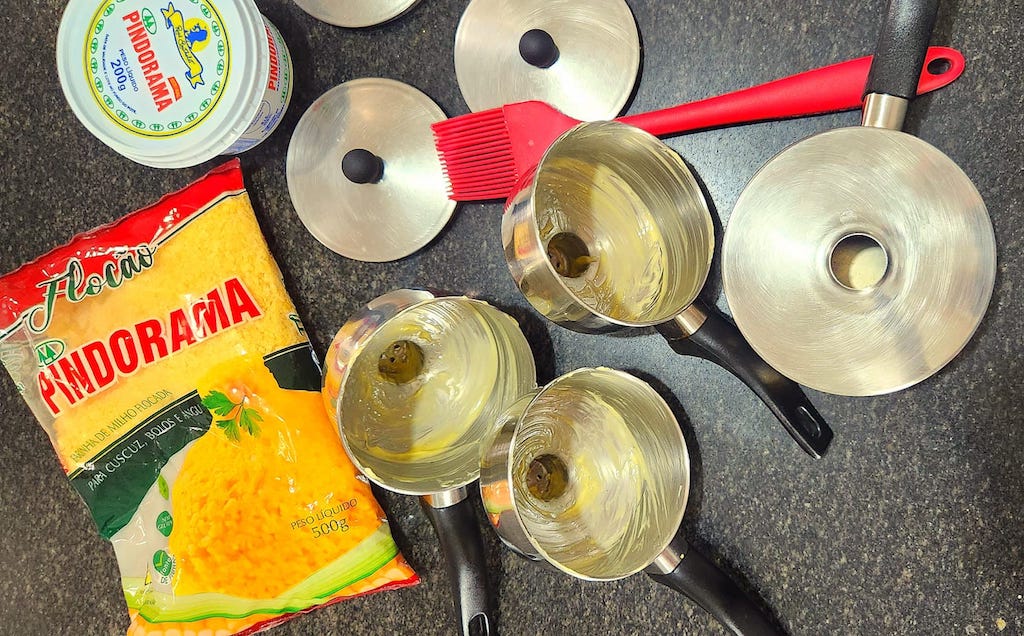 – Com pincel, unte a cuscuzeira com manteiga Pindorama.