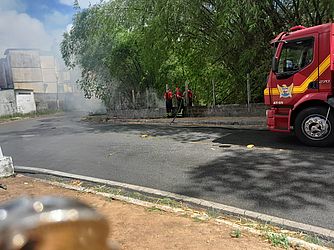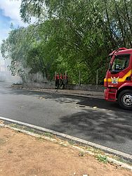 Imagens enviadas ao TNH1 mostram o momento da ação dos bombeiros, na tentativa de apagar o fogo. A fumaça se espalhou pelo local.