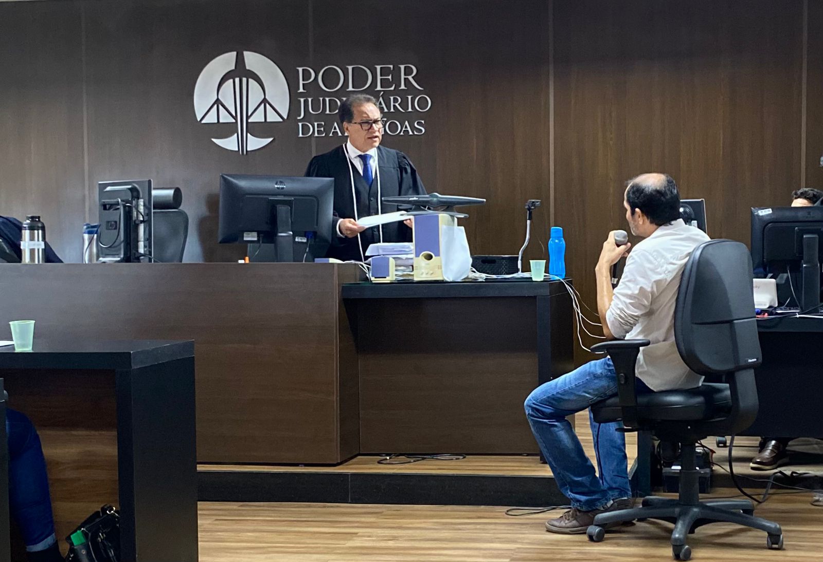 O juiz Geraldo Amorim, titular da 9ª Vara Criminal da Capital, mostrou as fotos do estado em que a vítima ficou. A família presente chorou nesse momento.