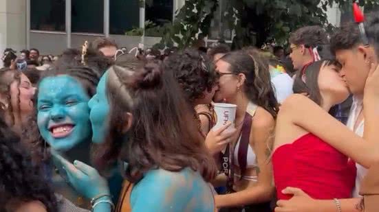 O atual recorde mundial é de 39.897 pares sendo alcançado no México. Neste domingo de carnaval (2), técnicos do Guinness World Records estava presente na ação para verificar se o recorde será quebrado ou não. O beijaço foi promovido durante a música “Deixa”. Pedro Calais, vocalista da Lagum, afirma que a ação está alinhada com o tema do bloco deste ano, convidando o público a vivenciar a cidade de forma livre.