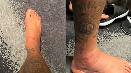 O atacante do Brasil postou quatro fotos, duas delas do tornozelo lesionado, ainda muito inchado após a pancada, uma selfie e outra com um equipamento de recuperação na perna, e ainda escreveu a mensagem "Bora!".
