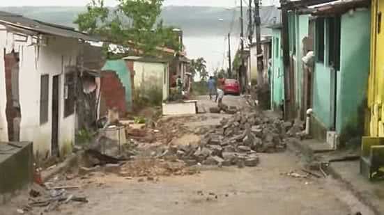 A Rua Mensageiro Nedson, no bairro de Fernão Velho, na capital alagoana, que já vinha sendo castigada pela chuva nas últimas semanas, agora teve o calçamento ainda mais arrancado pela força da água que caiu na madrugada desta sexta-feira, 17. Moradores disseram que a chuva intensa afundou mais o asfalto e aumentou as danificações nas estruturas de residências na localidade.