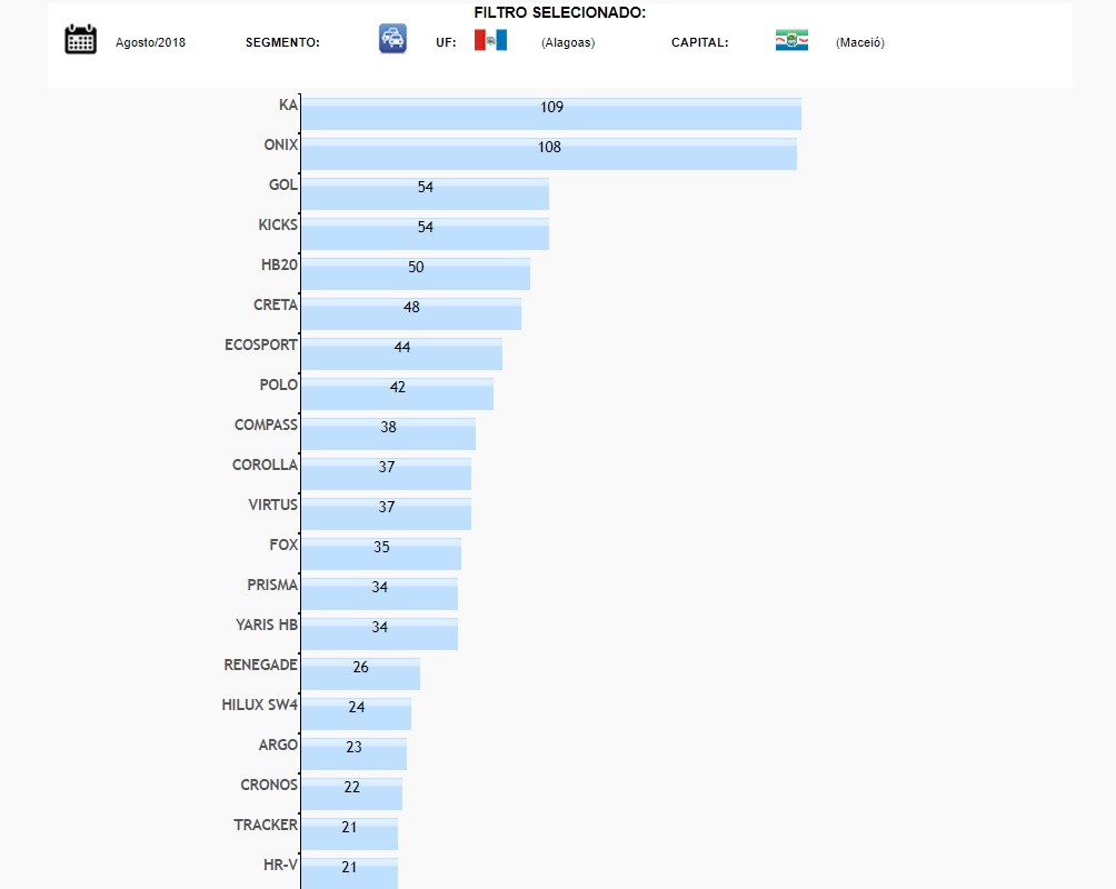 Confira abaixo o volume de vendas de cada um dos modelos em Maceió-AL: