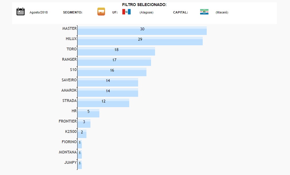 Confira abaixo o restante do ranking de comerciais leves de Maceió: