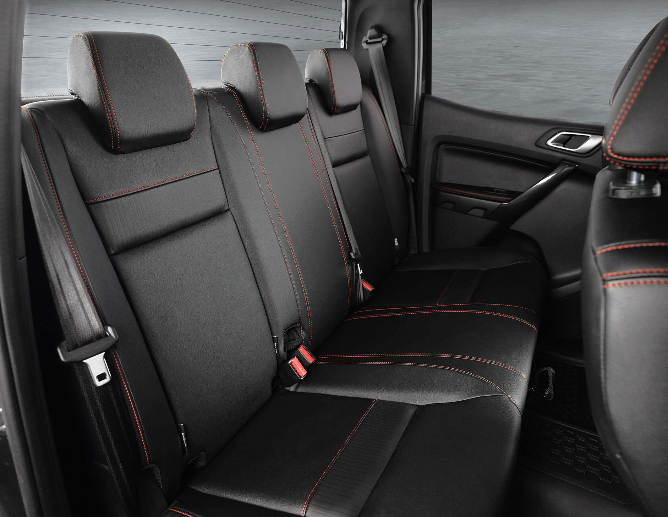 O interior da nova picape é igualmente requintado e exclusivo, incluindo bancos de couro premium com costuras vermelhas e o emblema FX4 em relevo nos encostos. O mesmo acabamento é visto na alavanca do câmbio e no descansa-braço central. Outro detalhe que chama a atenção é o aplique com acabamento escuro brilhante no painel em frente ao passageiro, no volante e nas molduras das maçanetas internas.