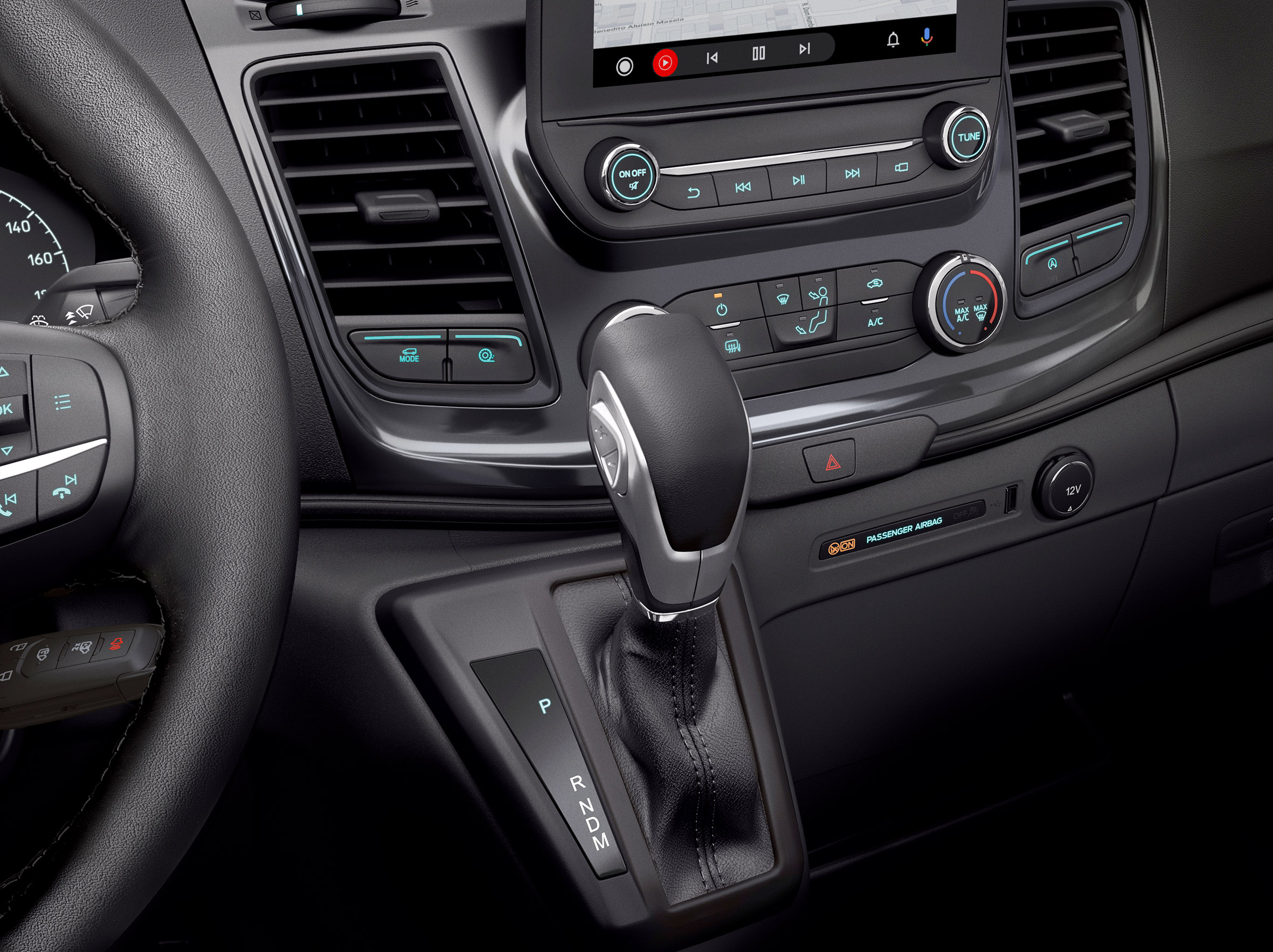 A transmissão automática da Transit utiliza uma programação adaptativa de mudança em tempo real que seleciona a marcha ideal para otimizar o desempenho e a economia de combustível em cada cenário de direção. Junto com o moderno motor 2.0 EcoBlue diesel, com 165 cv (@ 3.500 rpm) e torque de 39,7 kgfm (@ 1.750–2.750 rpm), ela garante força em aclives, segurança em declives e ultrapassagens, melhorando ainda mais a dirigibilidade, uma das características mais elogiadas da van.