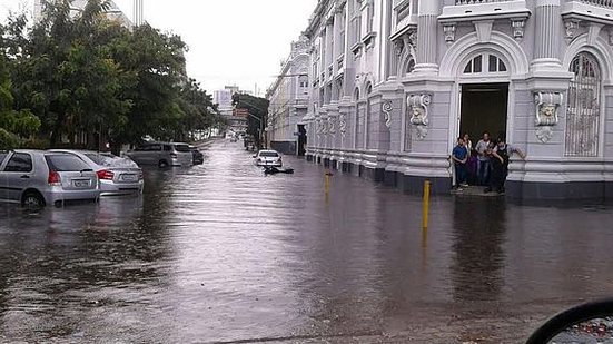 A capital cearense amanheceu sob forte chuva nesta quinta-feira (25). A água começou a cair forte ainda durante a noite. Choveu em 65 dos 184 municípios do Ceará, de acordo com a Fundação Cearense de Meteorologia e Recursos Hídricos (Funceme).