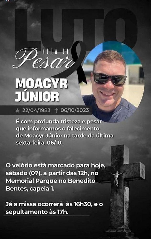 O fotógrafo Moacyr Junior, de 40 anos, que morreu ao ser esfaqueado durante assalto na tarde de sexta-feira, na Avenida da Paz, no Centro de Maceió, vai ser sepultado neste sábado, 7. A informação foi divulgada por familiares e amigos nas redes sociais.