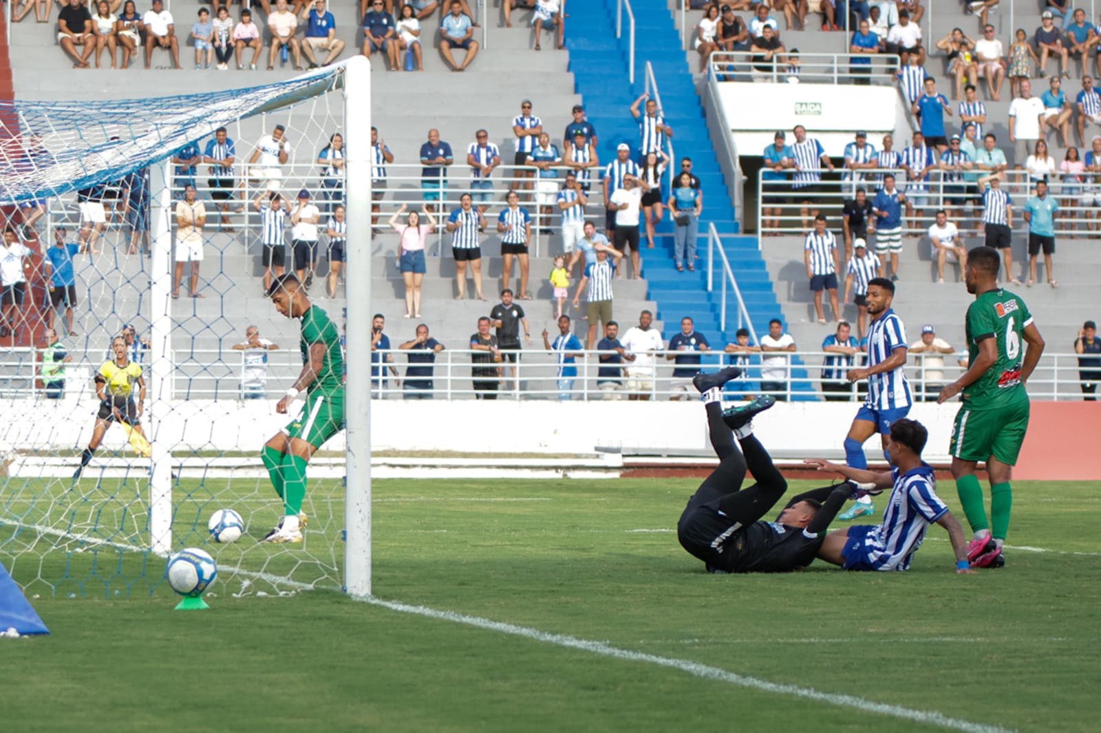A bola passou pelas mãos do goleiro Gustavo e quase o CSA abriu o placar ainda no primeiro tempo | Crédito: João Marcelo Cruz / TNH1