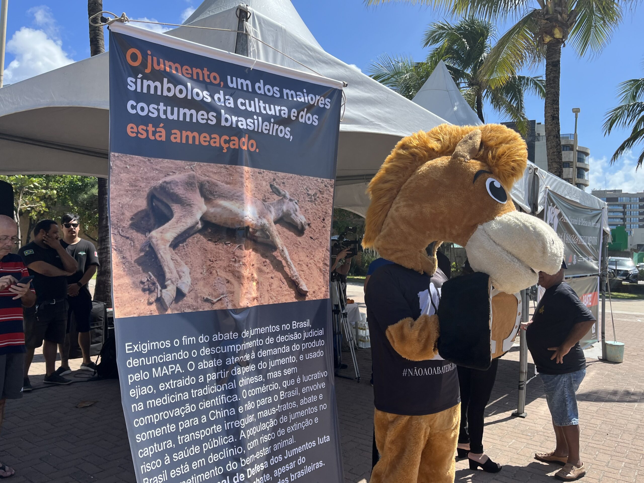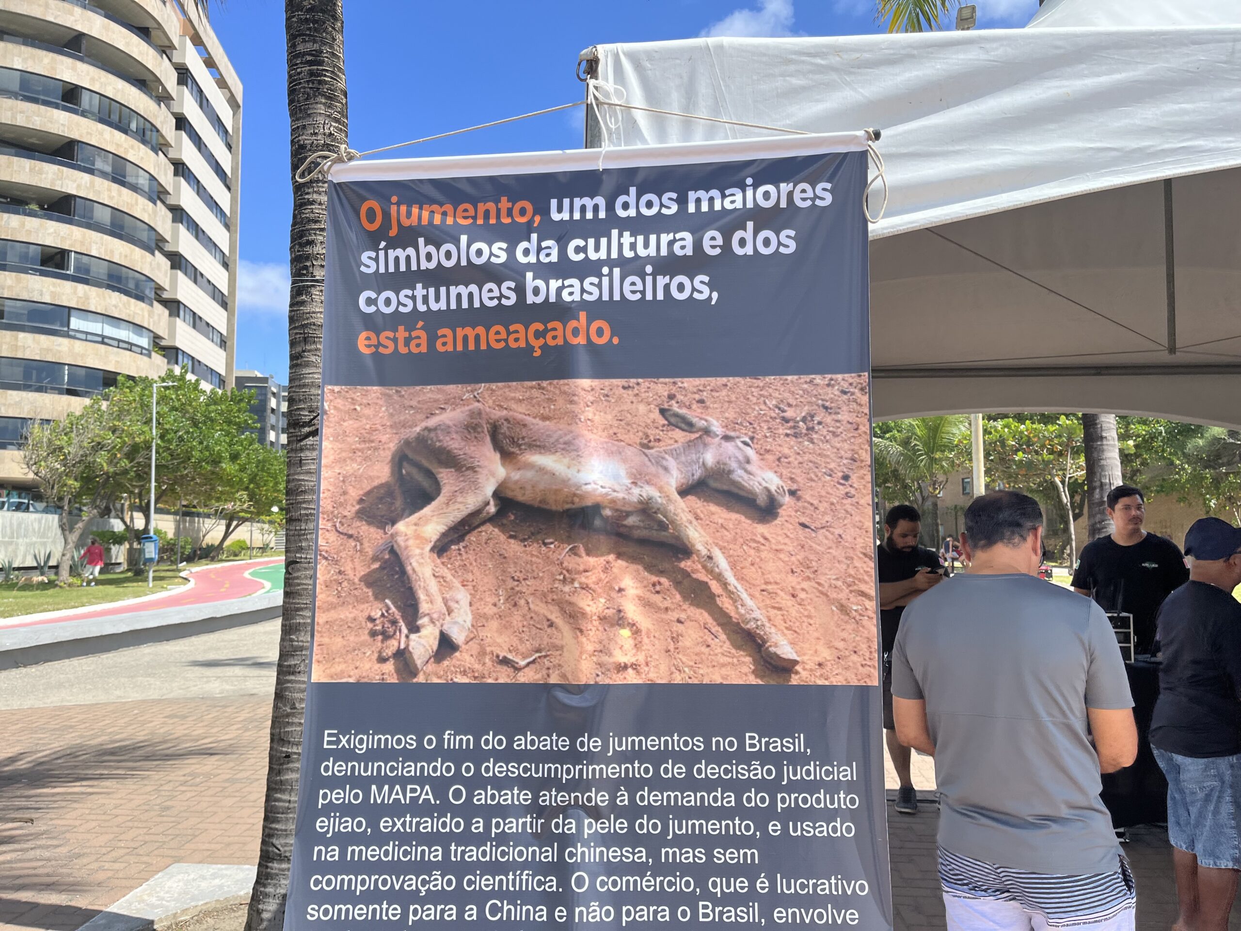 “Exigimos o fim do abate de jumentos no Brasil, denunciando o descumprimento de decisão judicial pelo MAPA. O abate atende à demanda do produto ejiao, extraído a partir do couro do jumento e usado na medicina tradicional chinesa, mas sem comprovação científica”, disse o professor da Universidade Federal de Alagoas (UFAL), Pierre Escodro.