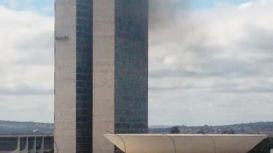 Pelas redes sociais, internautas compartilharam fotos e vídeos onde é possível perceber muita fumaça saindo de uma das torres do congresso.