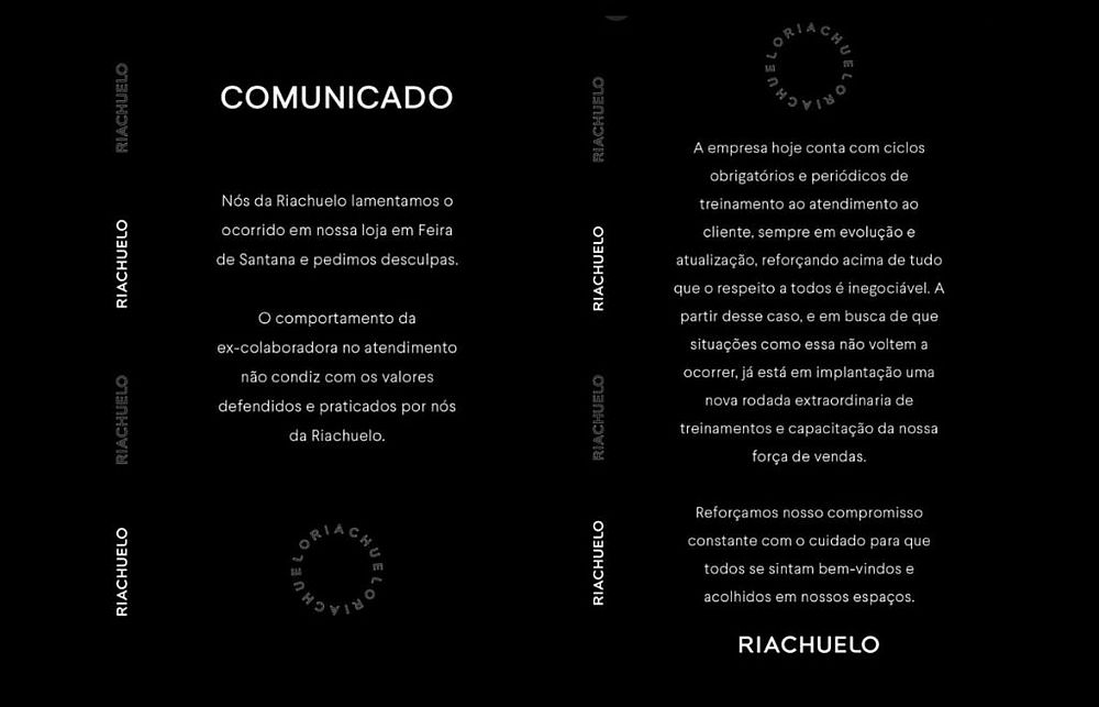 Após o vídeo com a denúncia da mãe viralizar nas redes sociais, a Riachuelo se pronunciou sobre o caso e lamentou o ocorrido. Ainda em nota, a loja disse a funcionária não faz mais parte do quadro de funcionários da empresa.