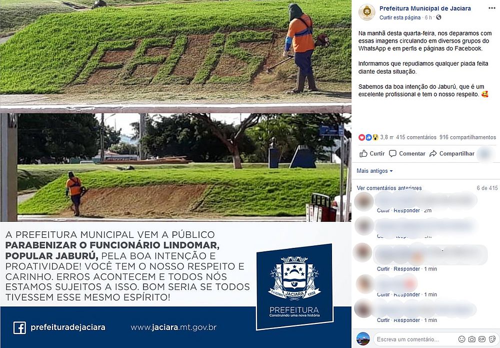 Compartilhada em diversos grupos de Whatsapp, a imagem circulou o país e o trabalhador sofreu ataques dos internautas. Porém, com o objetivo de defendê-lo, a prefeitura fez um post na página oficial do município, no Facebook, e elogiou a atitude de Lindomar.