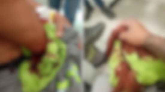 As primeiras informações apontam que os trabalhadores realizavam o corte do serviço de água do suspeito, momento em que foram surpreendidos e atacados com um facão. Imagens (em destaque) mostram ferimento e muito sangue em um dos braços das vítimas.