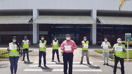 Funcionários de aeroportos realizam um minuto de silêncio em homenagem às vítimas do covid-19