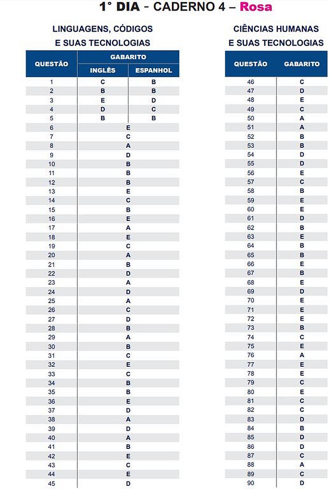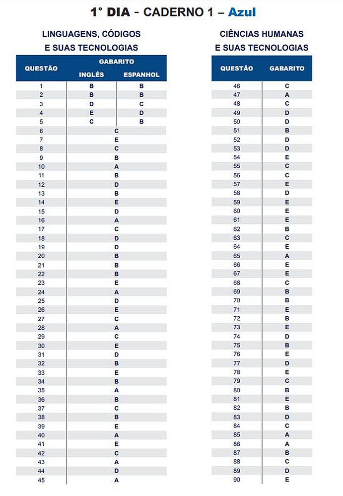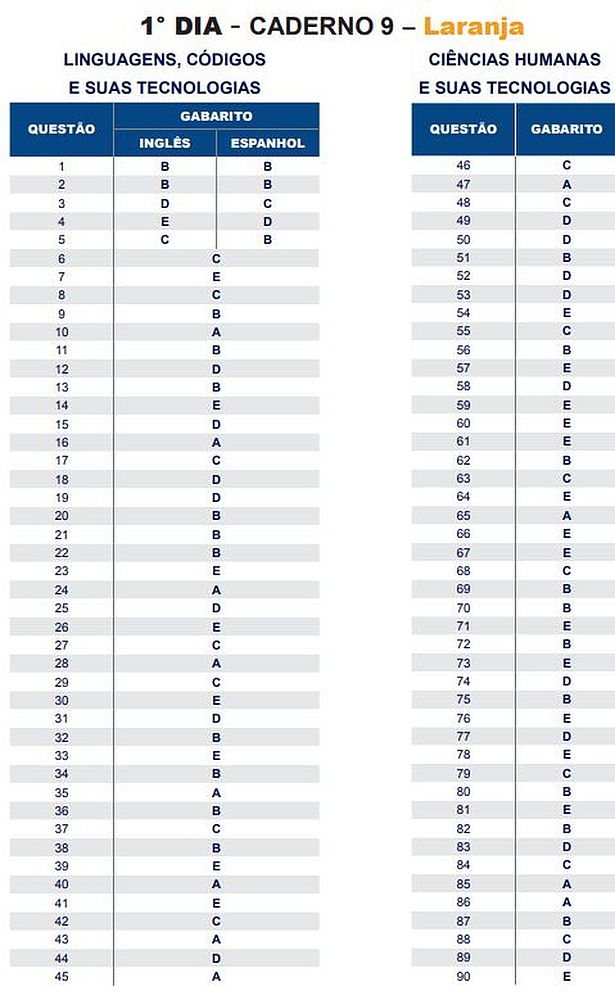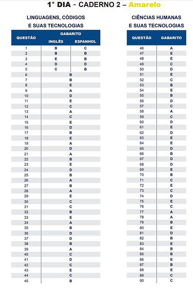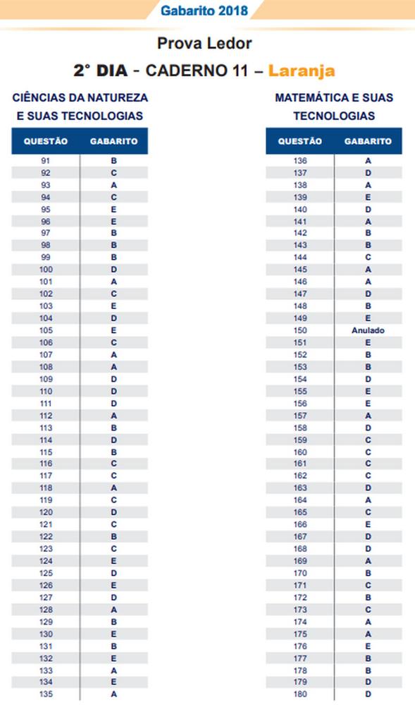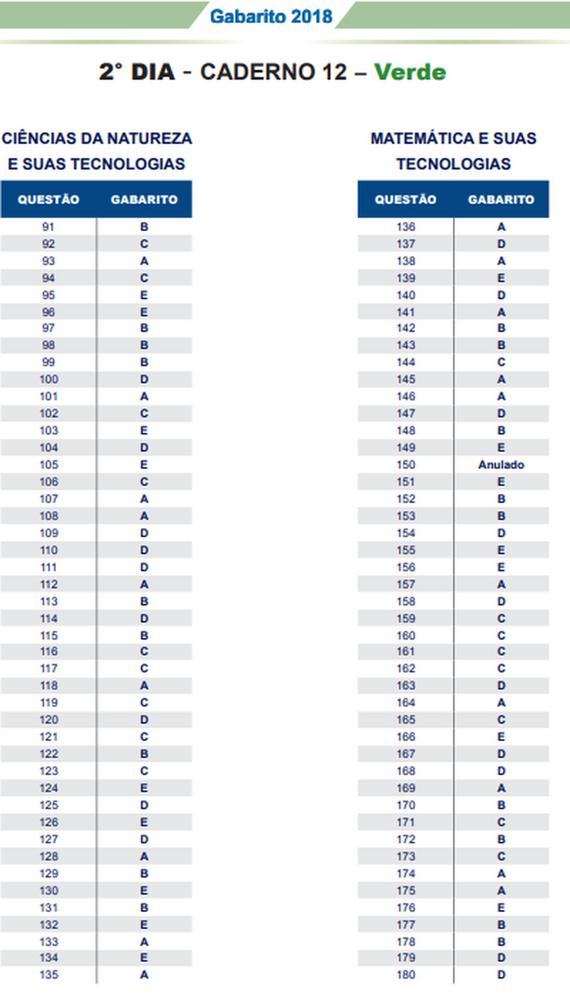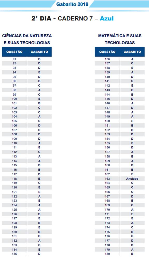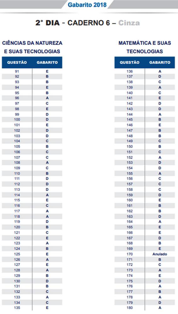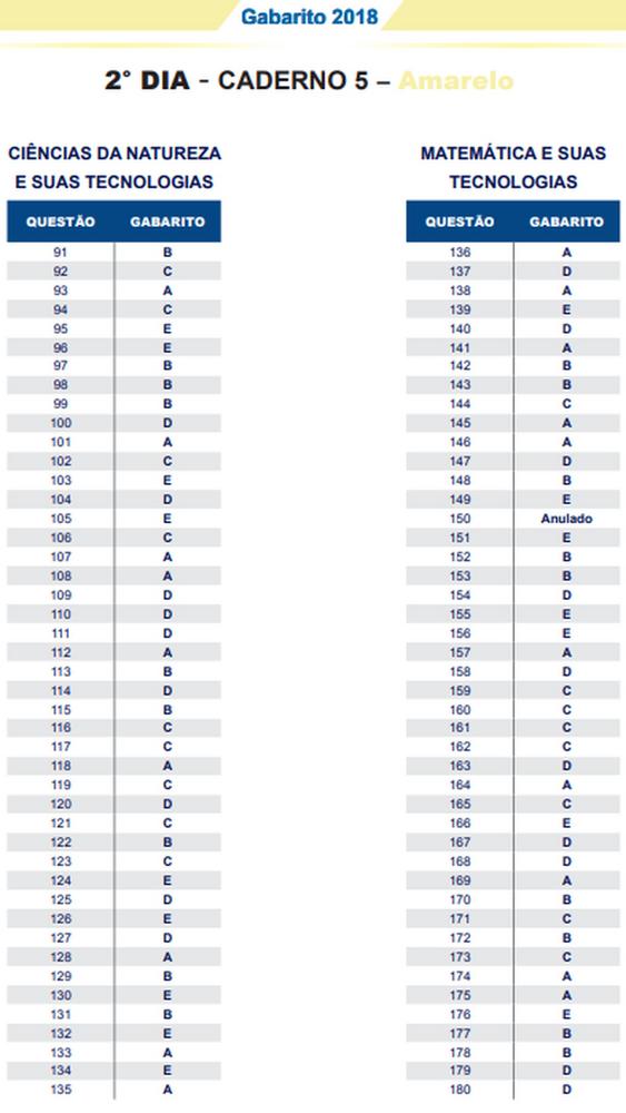 O gabarito oficial do Exame Nacional do Ensino Médio (Enem) 2018 foi divulgado nesta quarta-feira (14), pelo Instituto Nacional de Estudos e Pesquisas Educacionais Anísio Teixeira (Inep). Os cadernos de prova também estão disponíveis. Veja o link.