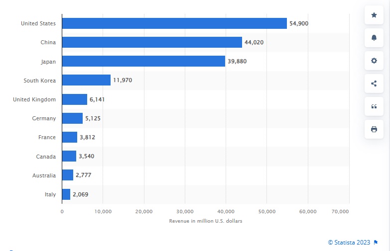 Também é importante ressaltar que dados estatísticos representam sempre uma estimativa da realidade, não sua tradução absoluta. Não é incomum empresas diferentes usarem metodologias diferentes e chegarem a resultados diferentes. É o que acontece neste caso: o pessoal do Statista tem um ranking com números e posições um tanto discrepantes da Newzoo: