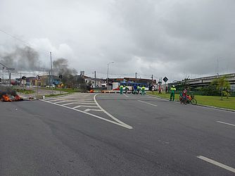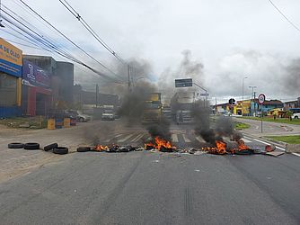 O protesto, nas proximidades da região conhecida como "Viaduto da Federal", deixou o trânsito congestionado. Os manifestantes queimaram pneus e galhos de árvores para impedir a passagem de veículos; veja vídeos: