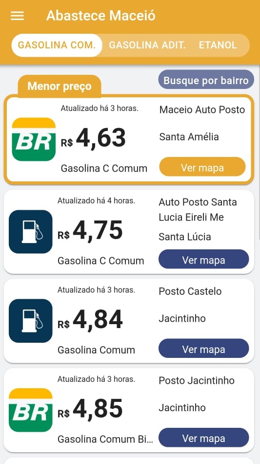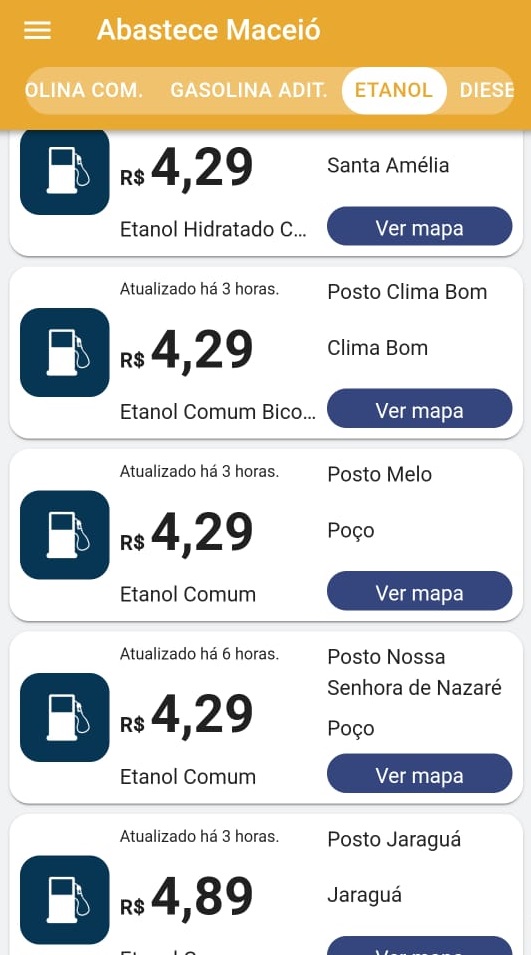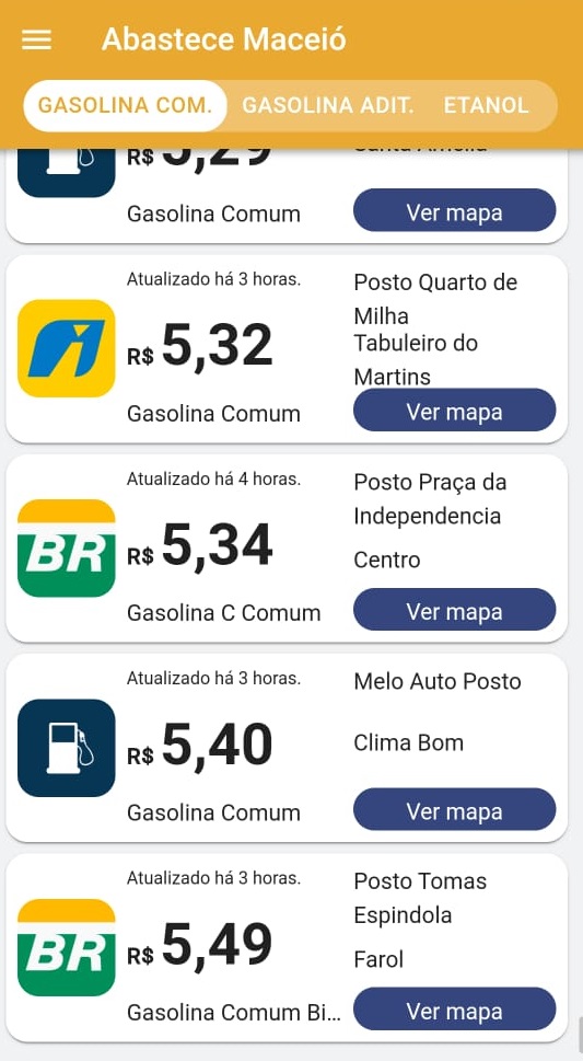 Confira os preços praticados nesta quinta, 18 de fevereiro, em Maceió, antes do aumento segundo os dados do aplicativo Abastece Maceió, da Agência Tatu.