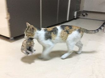 Nas fotos compartilhadas no Twitter, a "mamãe felina" entrega seu pequeno para os paramédicos do local. Em seguida, eles as cercam e começam a acariciá-la, como se quisessem dizer a ela que “tudo iria ficar bem no final”.