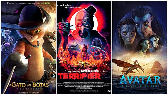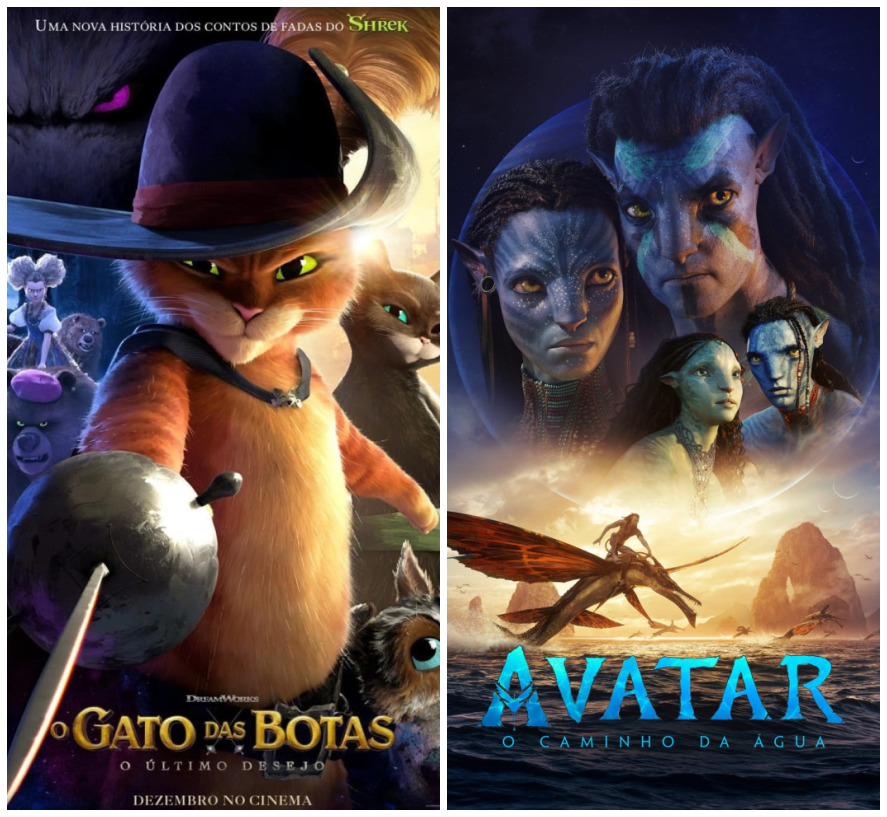 Na parte alta da cidade, ‘Gato de Botas 2: O Último Pedido’ estreia. ‘Terrifier 2’ e ‘Avatar: O Caminho da Água’ continuam em cartaz.