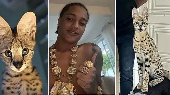 O Savannah F1 é resultado do cruzamento direto de um gato doméstico e o serval, um felino nativo da África. Nas redes sociais, Oruam publica momentos de interação com o pet, que está sendo adestrado.