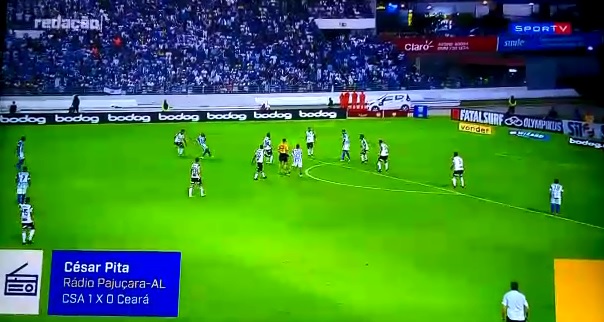 A narração de César Pita no belo gol de Carlinhos, que deu a vitória do CSA sobre o Ceará e decretou a saída do time alagoano da zona do rebaixamento da Série A do Brasileirão no último domingo (22), no Rei Pelé, teve repercussão nacional após a partida. A transmissão da Rádio Pajuçara FM Maceió - 103,7 ganhou destaque no programa Redação SporTV, do canal fechado SporTV, na manhã desta segunda-feira (23).