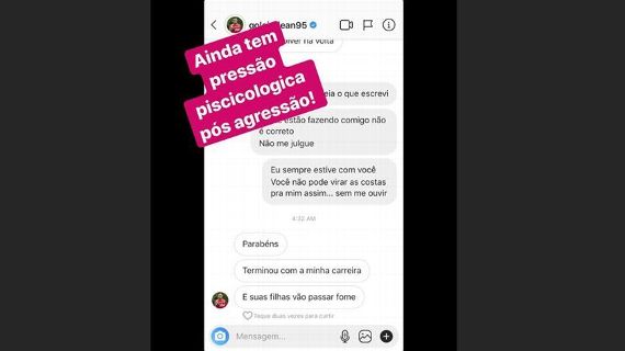 Milena também reproduziu mensagens que teriam sido enviadas a ela pelo jogador depois das agressões.