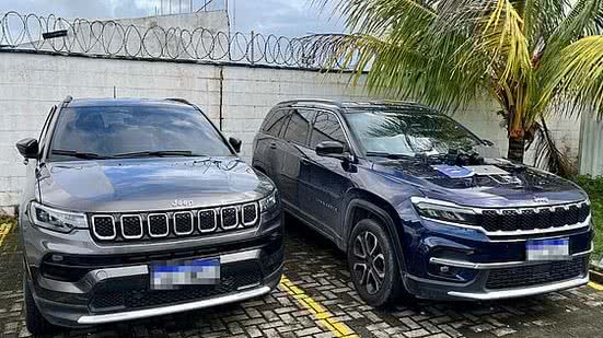 Na manhã de hoje foram apreendidos dois veículos "premium", sendo um Jeep Compass e um Jeep Commander, uma pistola 9mm, cartuchos de vários calibres, um Macbook, duas câmeras fotográficas e dois iPhones.