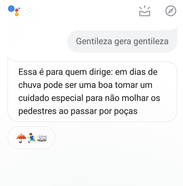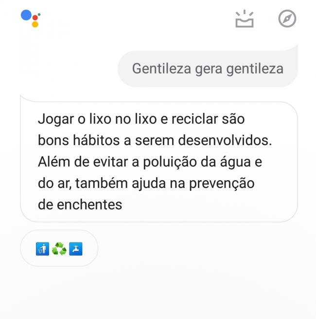Então, quando o usuário disser “Ok Google, gentileza gera gentileza”, a plataforma vai sugerir algumas atitudes positivas. Na lista estão coisas como dicas para reciclar o lixo e até regras de convivência, como segurar o elevador para quem vem chegando logo ali.