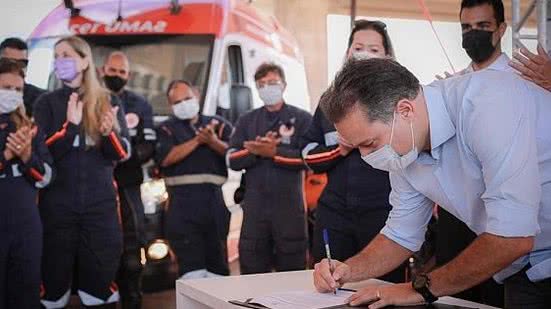 O governador Renan Filho e o secretário de Estado da Segurança Pública, Alfredo Gaspar de Mendonça, assinaram, na manhã desta quarta-feira (24), a ordem de serviço para o início das obras de construção da Base Descentralizada do Serviço de Atendimento Móvel de Urgência (Samu) e do Corpo de Bombeiros Militar de Alagoas (CBMAL). A unidade será instalada na área sob o Viaduto da Polícia Rodoviária Federal (PRF), entroncamento entre as BRs 316 e 104, Tabuleiro do Martins, em Maceió, onde foi realizada a solenidade.