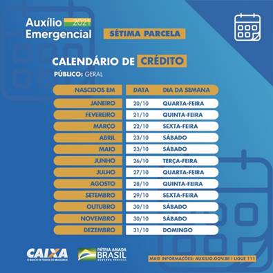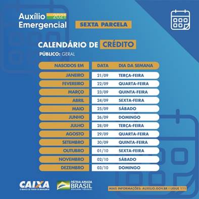 O calendário completo está disponível em auxilio.caixa.gov.br.